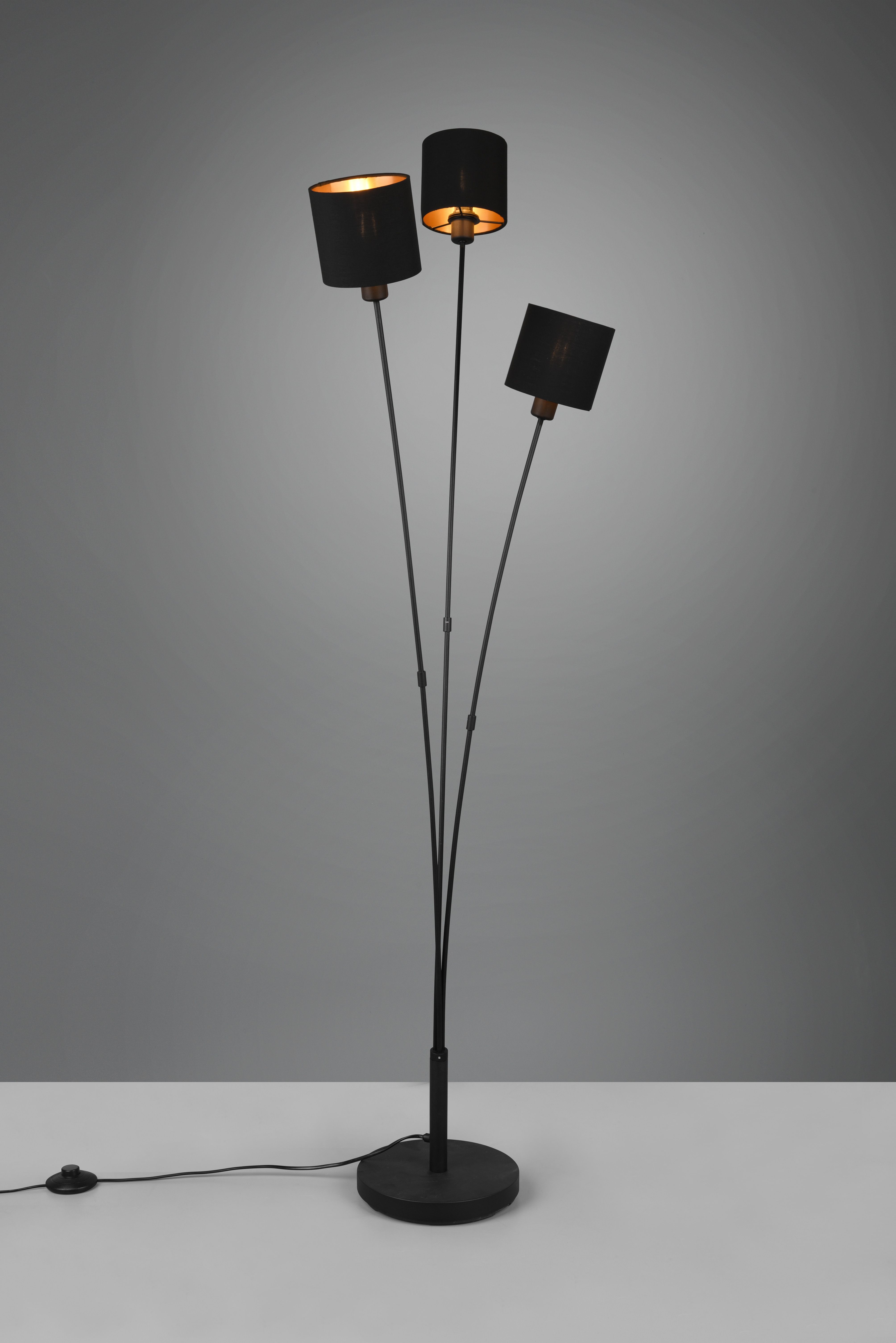 In black matt/gold, the floor lamp rounds off modern furnishing styles optimally.