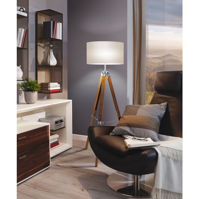 Φωτιστικό Δαπέδου Τρίποδο Ø975xØ450xH1060-1430mm Μονόφωτο 1xE27 Μέταλλο-Ξύλο-Ύφασμα Μπεζ Eglo Lantada 94324