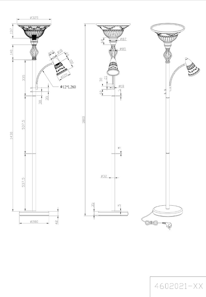 Φωτιστικό Επδαπέδιο Δίφωτο 1xE27 & 1xE14 Ø32,5xH180εκ. Μέταλλο Καφέ Σκουριάς-Γυαλί Λευκό Ματ Trio Lighting Rustica 4602021-24