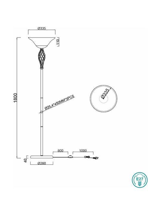 Φωτιστικό Επδαπέδιο Δίφωτο 2xE27 Ø33,5xH180εκ. Μέταλλο Καφέ Σκουριάς-Γυαλί Λευκό Ματ Trio Lighting Rustica 401000224