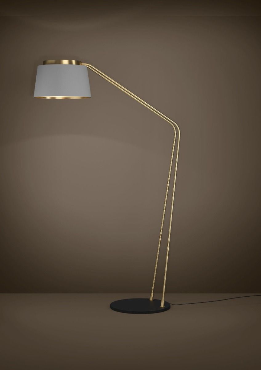 Φωτιστικό Επιδαπέδιο Ø450xB410xL1100xH1805mm 3xE27 Ύφασμα Γκρι-Μέταλλο Απόχρωση Ορειχάλκινη Eglo Almerimar 390174