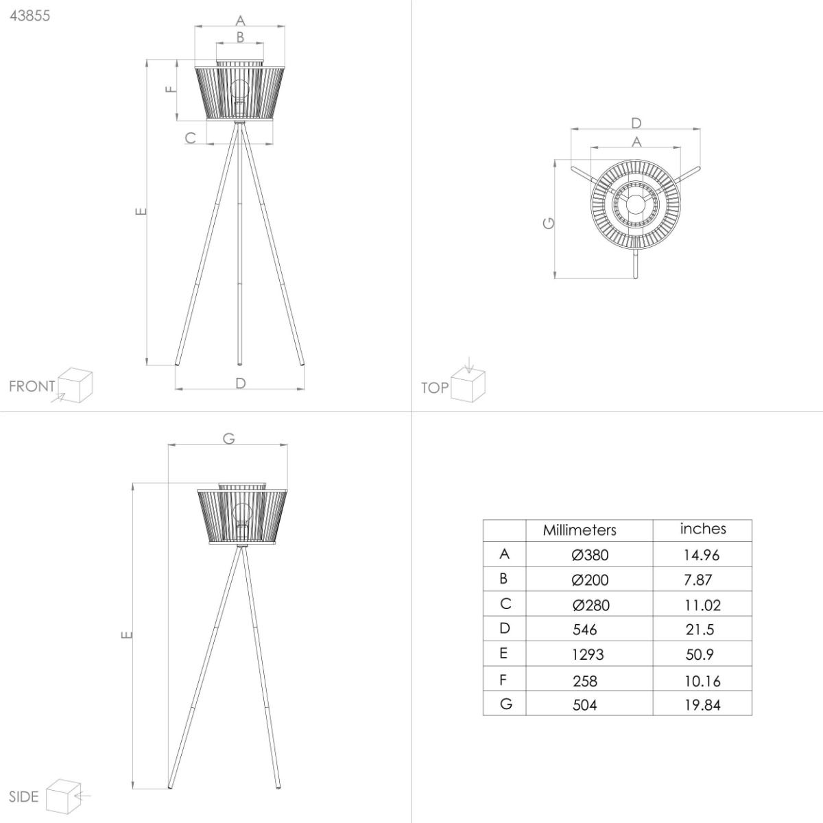 Διαστάσεις: Ø630xH1295mm Αμπαζούρ Ø380mm