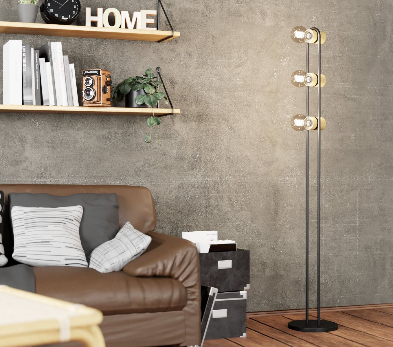 Φωτιστικό Επιδαπέδιο Τρίφωτο L85xØ230xH1405mm 3xΕ27 Μέταλλο-Ξύλο Μαύρο Φυσικό Eglo Chieveley 43544