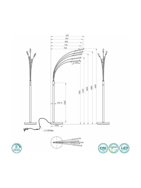 Φωτιστικό Επιδαπέδιο Υ195x30x85cm 5x3,5w 5x350lm 3000K Nickel Matt Trio Reed R41031507