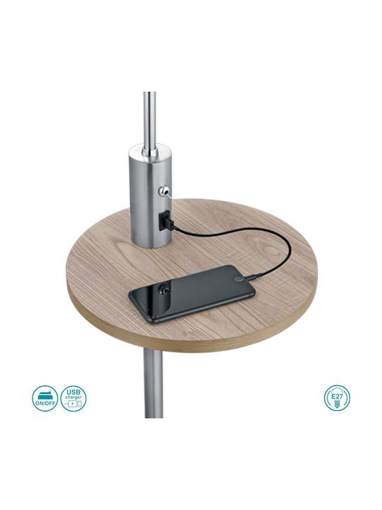 Φωτιστικό Επιδαπέδιο με Βοηθητικό Τραπεζάκι Υ160 1xE27 Μέταλλο Μαύρο Νίκελ Ματ-Υφασμάτινα Αμπαζούρ Trio Lighting Claas 400400107