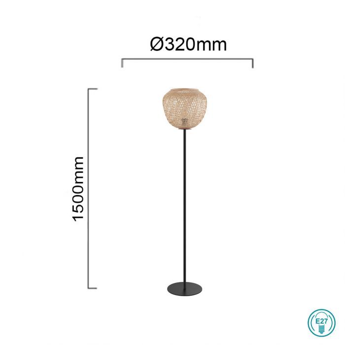 Φωτιστικό Επιτδαπέδιο Nature Ξύλο Φυσικό-Μαύρο Μέταλλο 1*Ε27 Eglo Dembleby 43264