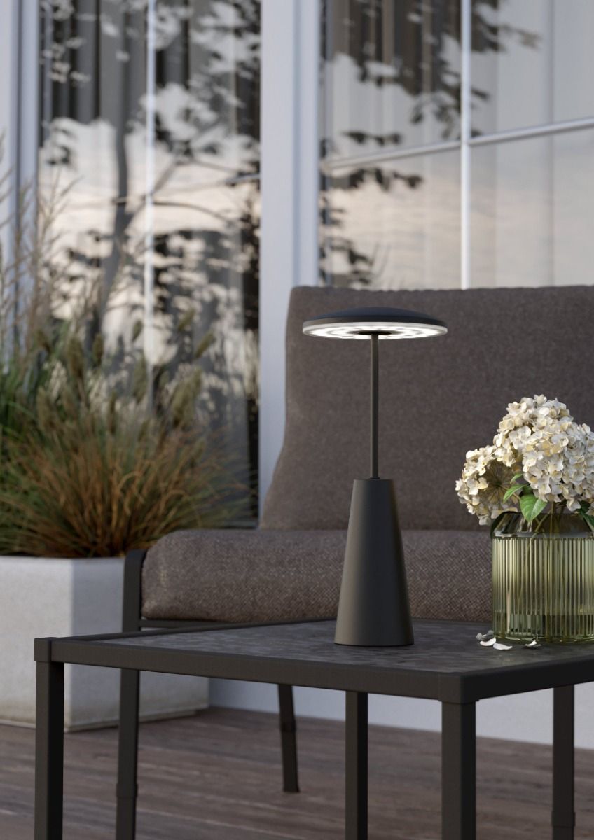 Φωτιστικό Επιτραπέζιο Επαναφορτιζόμενο Touch IP44 Led 2w 3000K 200lm Black Eglo Piccola 900925