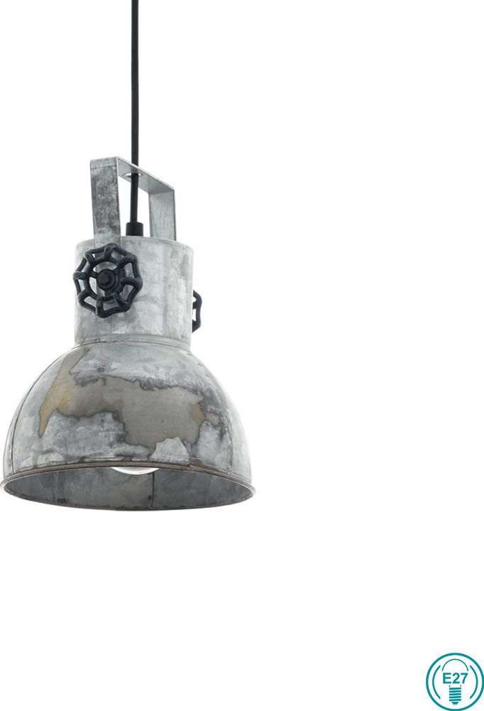 Φωτιστικό Κρεμαστό Ø17,5 εκ. Vintage Industrial Μέταλλο Παλαιωμένο Ασημί Eglo Barnstaple 49619