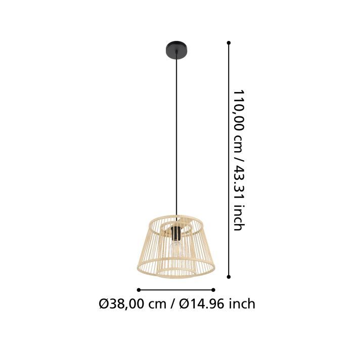 Φωτιστικό Κρεμαστό Ø380xH1100mm 1xE27 Μπαμπού-Μαύρο Eglo Hykeham 43852