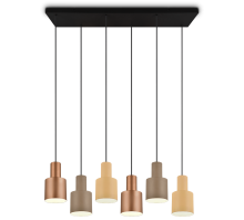 Φωτιστικό Κρεμαστό Εξάφωτο Ράγα L85x27xH150cm 6xE27 Μέταλλο Μαύρο Ματ- Αμπαζούρ Καφέ Trio Lighting Agudo 319400617