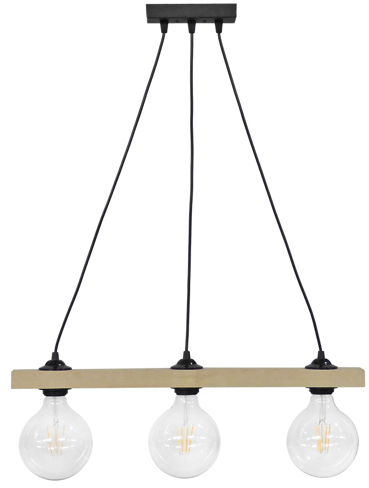 Φωτιστικό κρεμαστό με ράγα ξύλινη και μαύρο καλώδιο Ε/27 RAGA 3L CABLE WOOD δεν συμπεριλαμβάνονται οι λαμπτήρες