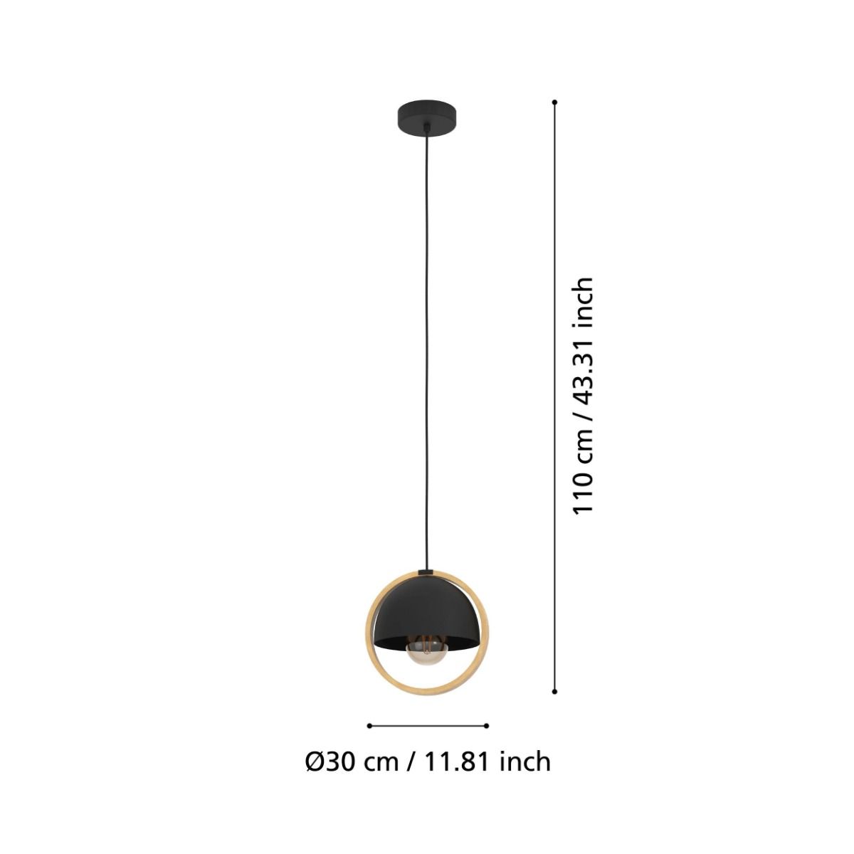 Φωτιστικό Κρεμαστό Μονόφωτο Ø230xH1100mm 1xE27 Μέταλλο-Ξύλο Eglo Callow 43755