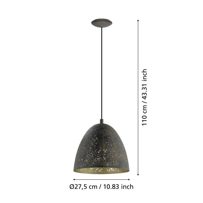 Φωτιστικό Κρεμαστό Μονόφωτο Ø27,5 εκ.Μέταλλο Καφέ-Χρυσό Eglo Safi 49814.