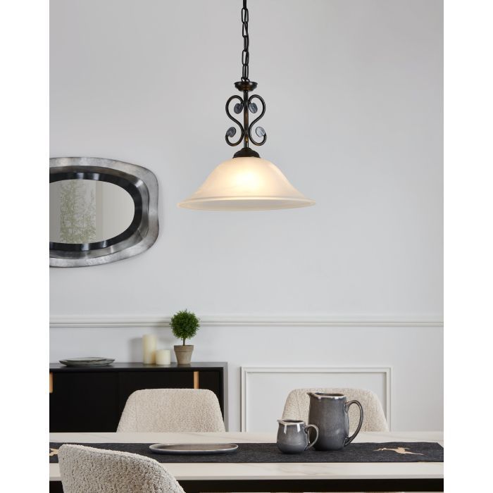 Φωτιστικό Κρεμαστό Μονόφωτο Ø38 cm Ατσάλι Μαύρο Γυαλί Λευκό Αλάβαστρο Eglo Murcia 91002