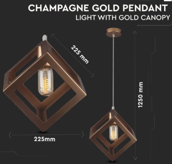 Φωτιστικό Κρεμαστό Μονόφωτο Κύβος Μέταλλο Σαμπανιζέ V-tac 3833