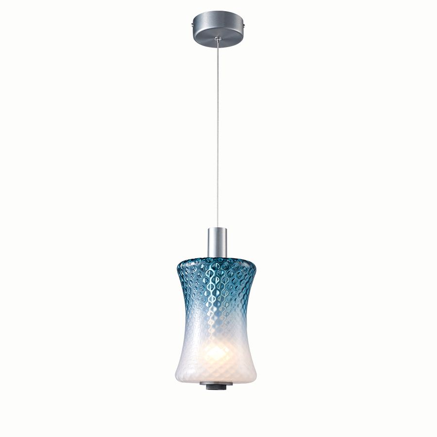Φωτιστικό Κρεμαστό Μονόφωτο 15xH180cm Led 4w 220lm 3000K Χειροποίητο Γυαλί Μπλε-Λεπτομέρειες Γραφίτη Sun Light PAUL-1P-BL