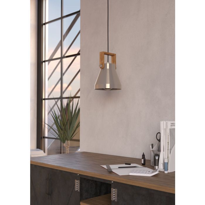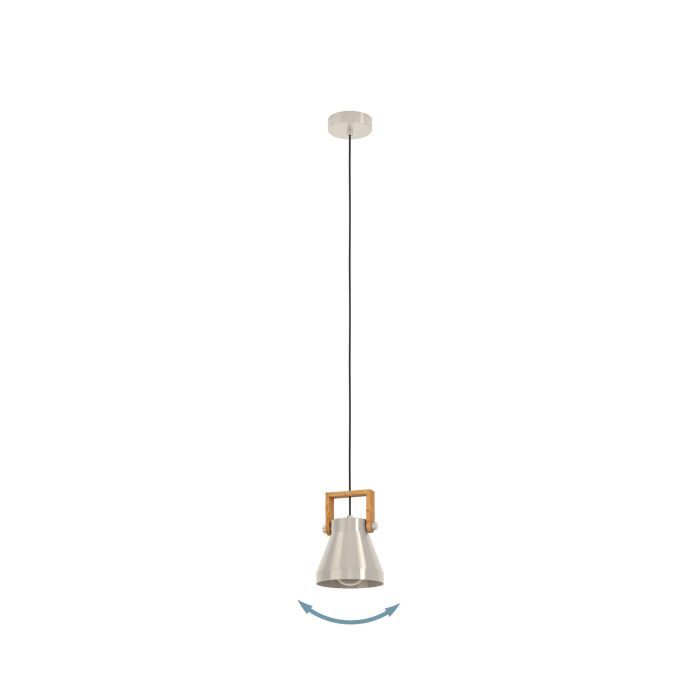 Φωτιστικό Κρεμαστό Μονόφωτο 1xE27 Ø160xH1100mm Χάλυβας-Ξύλο Ρουστίκ Καφέ Eglo Cawton 43951