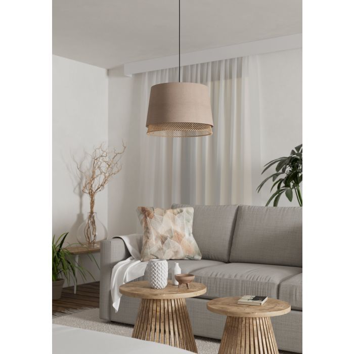 Φωτιστικό Κρεμαστό Μονόφωτο 1xE27 Ø380xH1100mm Μέταλλο-Ξύλο-Ύφασμα Eglo Tabley 43975