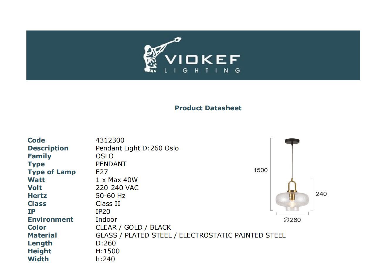 Μονόφωτο D:260 Oslo Viokef 4312300