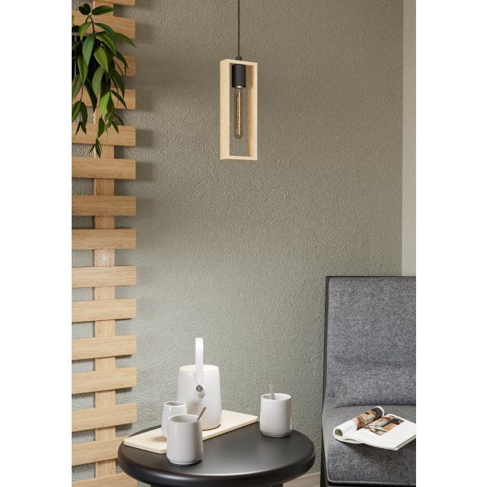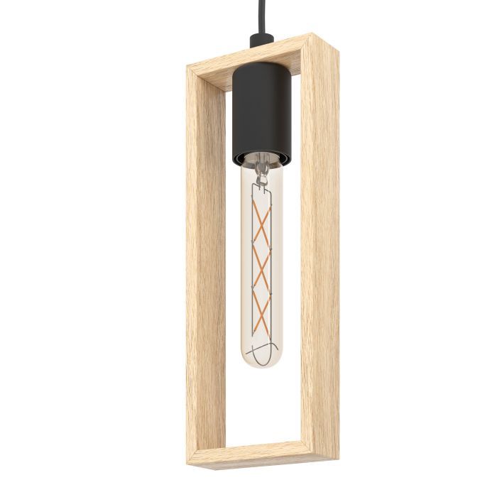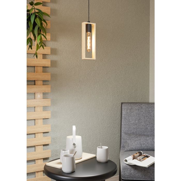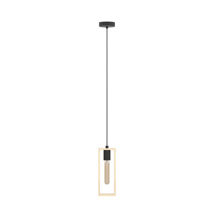 Φωτιστικό Κρεμαστό Μονόφωτο L110xΒ100xH1100mm 1xE27 Μέταλλο Μαύρο-Ξύλο Φυσικό Eglo Littleton 49473