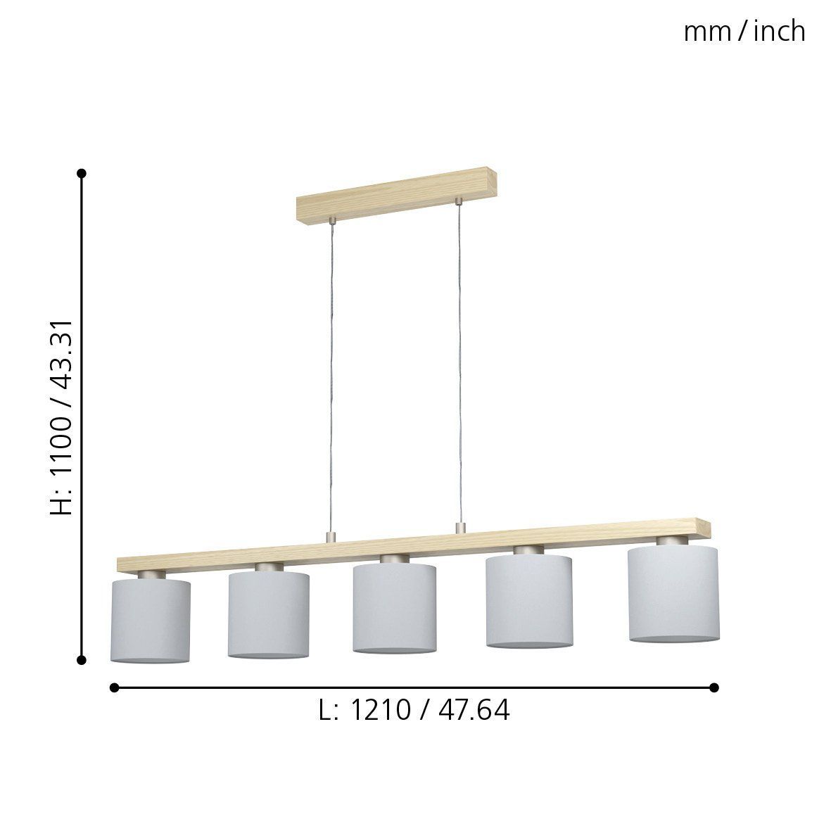 Φωτιστικό Κρεμαστό Πεντάφωτο L1210xB150x1100mm 5xΕ27 Λευκό-Ξύλο Eglo Castralvo 98591