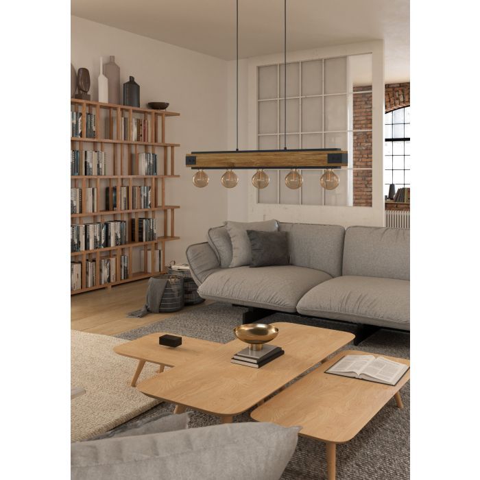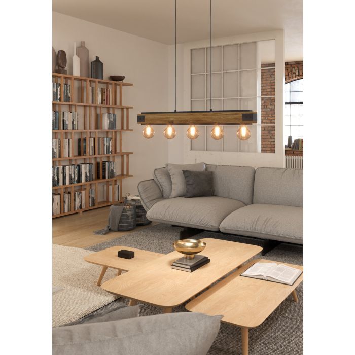 Φωτιστικό Κρεμαστό Ράγα Πεντάφωτη L960xH1100mm 5xE27 Μέταλλο Μαύρο-Ξύλο Eglo Layham 43468