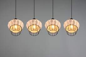 Φωτιστικό Κρεμαστό Ράγα 95xØ17xΗ150cm 4xE27 Ράταν Φυσικό -Μαύρο Trio Borka R31264036