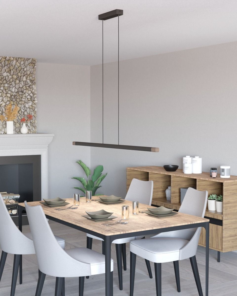 Φωτιστικό Κρεμαστό Ράγα L1260xB35xH1100mm Led 22w 2500lm Warm White Μέταλλο Γκρι-Ξύλο Eglo Lisciana 900175