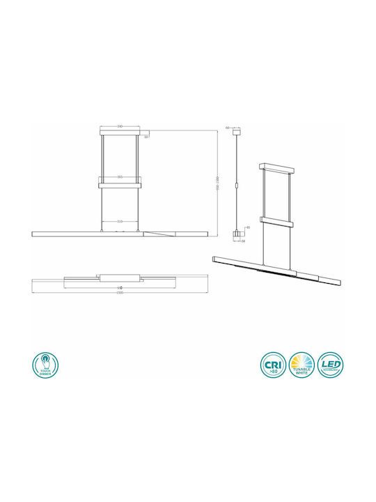 Φωτιστικό Κρεμαστό Ράγα L95xH150cm Led Smd 45w 5300lm 2700-5000K Μέταλλο Μαύρο-Μπρονζέ Ματ Trio Trajan 375310502