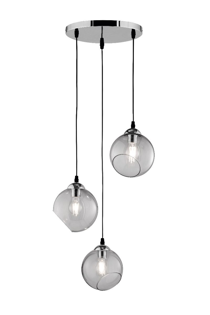 Φωτιστικό Κρεμαστό Ροζέτα Τρίφωτη Ø35 εκ. Μέταλλο Χρώμιο/ Γυαλί Φιμέ Trio Clooney R30073054