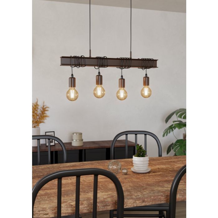 Φωτιστικό Κρεμαστό Τετράφωτο Ράγα L700xH1100mm 4xE27 Καφέ Αντικέ Eglo Townshend 4 43523