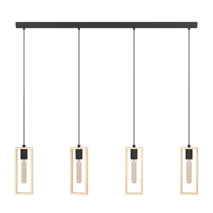 Φωτιστικό Κρεμαστό Τετράφωτο L1160xΒ55xH1100mm 4xE27 Μέταλλο Μαύρο-Ξύλο Φυσικό Eglo Littleton 49475