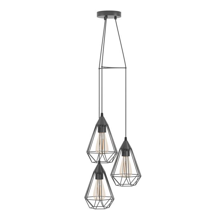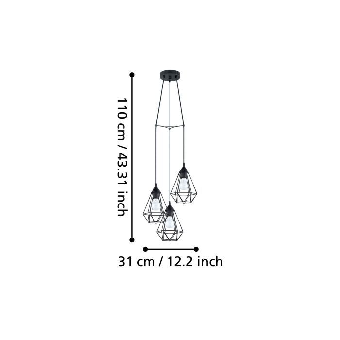 Φωτιστικό Κρεμαστό Τρίφωτο Ø31 εκ.Vintage Μέταλλο Μαύρο Eglo Tarbes 94191