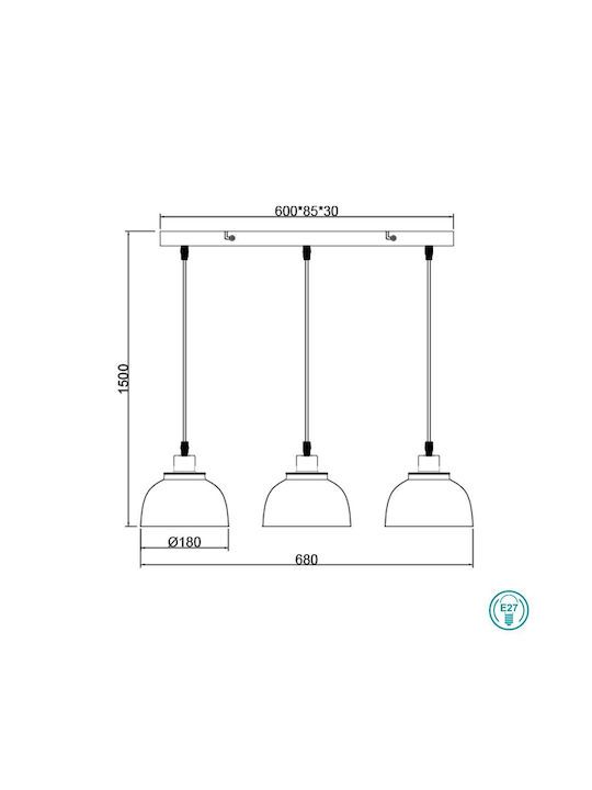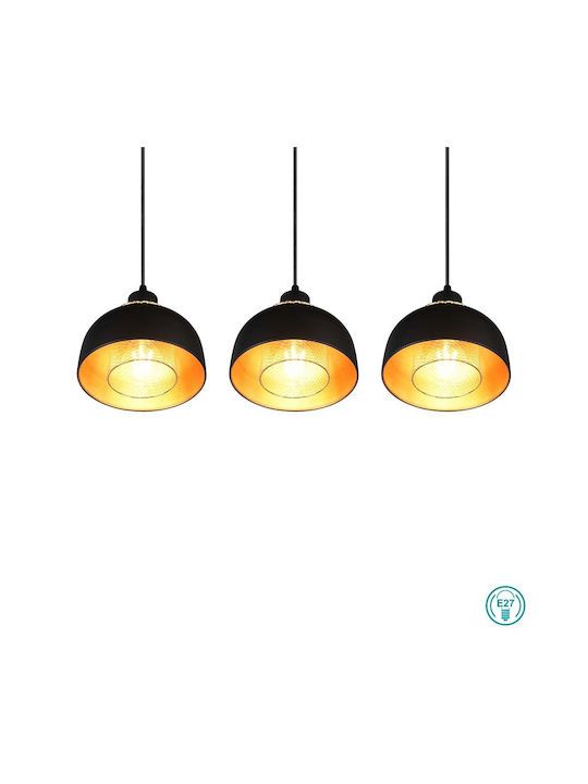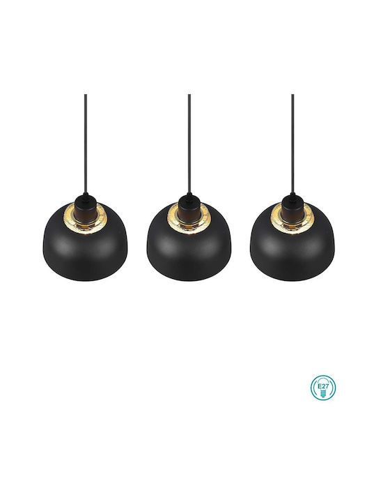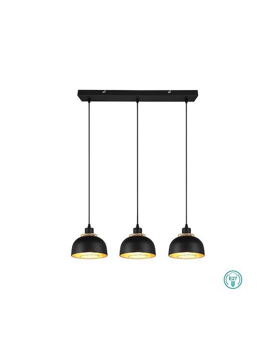 Φωτιστικό Κρεμαστό Τρίφωτο Ράγα L68x18xΗ150cm 3xE27 Μέταλλο Μαύρο Ματ Trio Punch R30813032