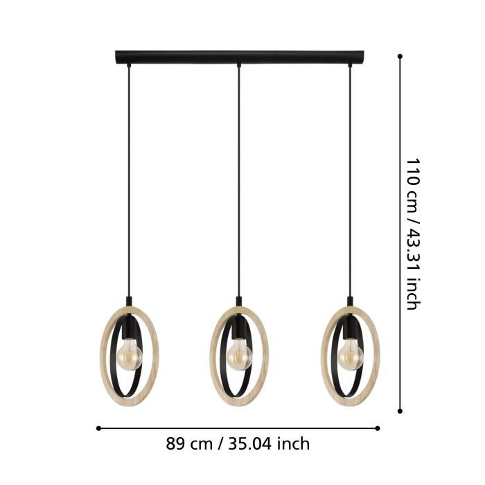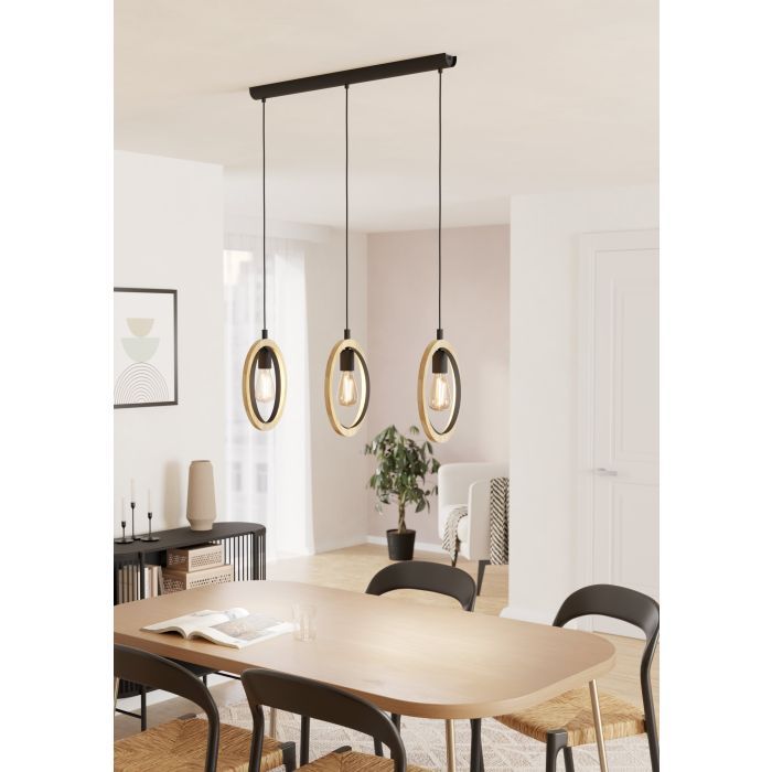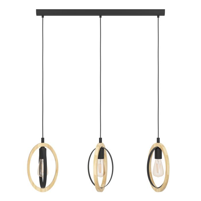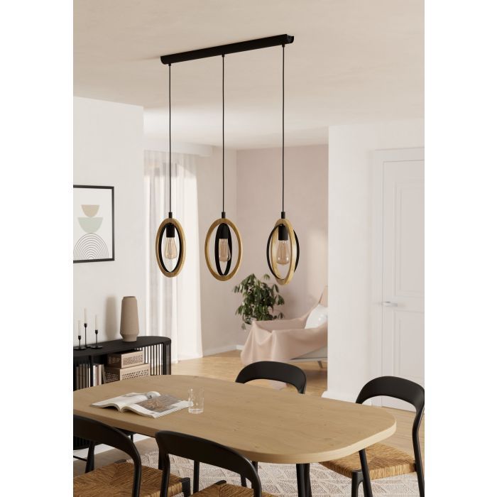 Φωτιστικό Κρεμαστό Τρίφωτο Ράγα L780xH1100mm 3xE27 Μέταλλο Μαύρο-Ξύλο Eglo Basildon 43462