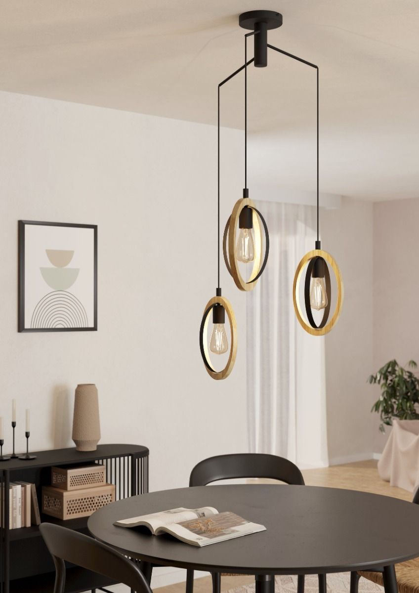 Φωτιστικό Κρεμαστό Τρίφωτο Ροζέτα Ø615xH1300mm 3xE27 Μέταλλο Μαύρο-Ξύλο Eglo Basildon 43463