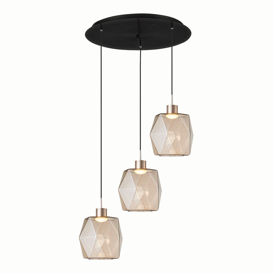 Φωτιστικό Κρεμαστό Τρίφωτο Ροζέτα Μαύρη 35xH180cm Led 15w 840lm 3000K Χειροποίητα Γυαλιά Μελί D18cm Sun Light VENET-3R