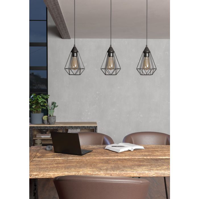Φωτιστικό Κρεμαστό Τρίφωτο σε Ράγα 79 εκ. Vintage Μέταλλο Μαύρο Eglo Tarbes 94189.