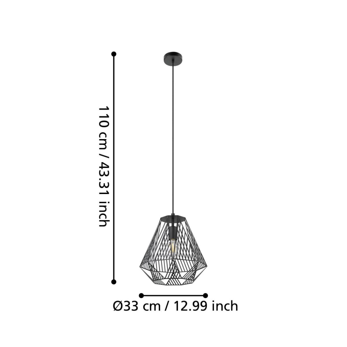Φωτιστικό Κρεμαστό Μονόφωτο Ø330xH1100mm 1xE27 Μέταλλο Black Eglo Stype 43692