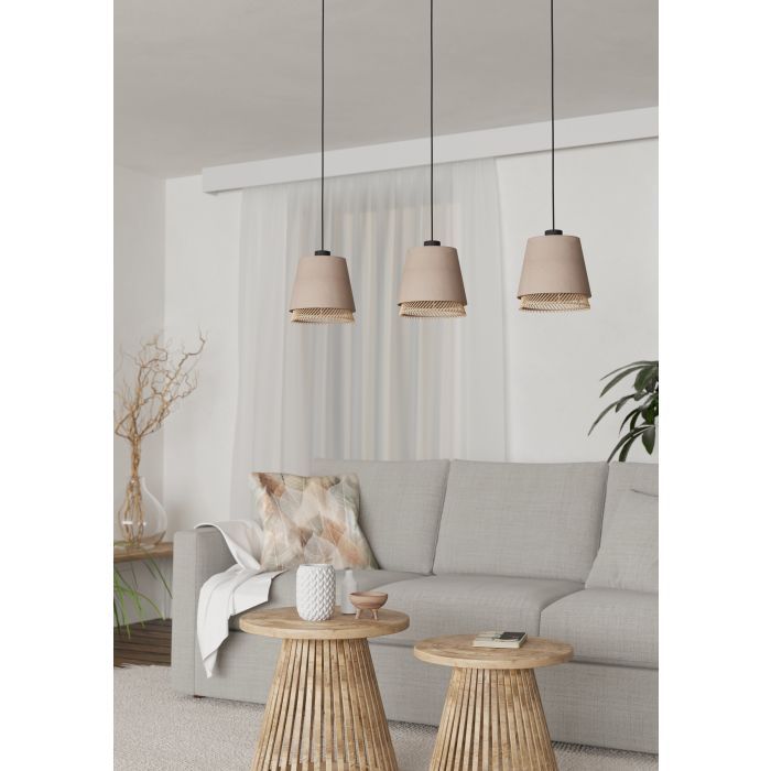 Φωτιστικό Κρεμαστό Τρίφωτο 3xE27 L890xH1100mm  Μέταλλο-Ξύλο-Ύφασμα Eglo Tabley 43976