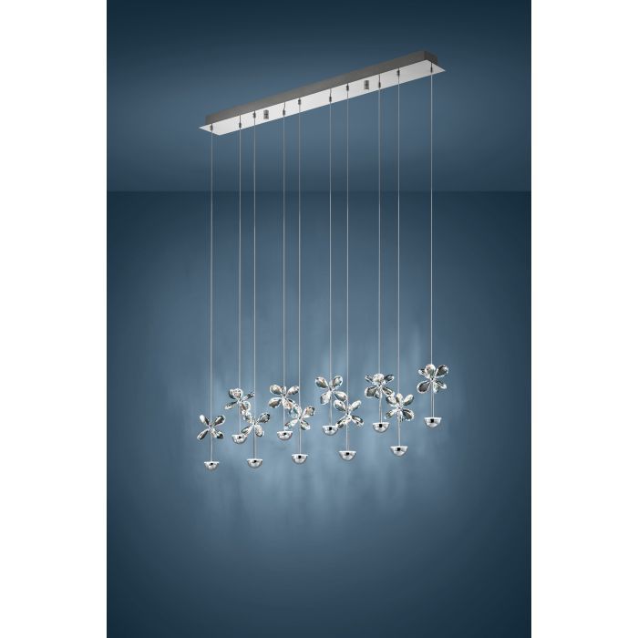 Φωτιστικό Κρεμαστό Ράγα 87cm Led 10x2,w 3000K 2700lm Χρωμέ / Διάφανα Κρύσταλλα Eglo Pianopoli 93663