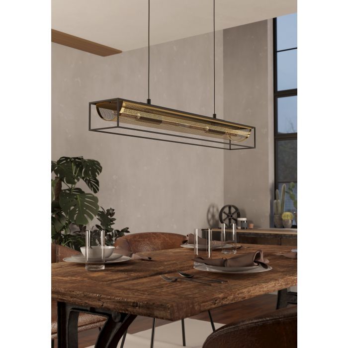 Φωτιστικό Κρεμαστό Τετράφωτο 4xE27 L11120xH1500mm Μέταλλο Black-Brass Eglo Nohaeles 43788