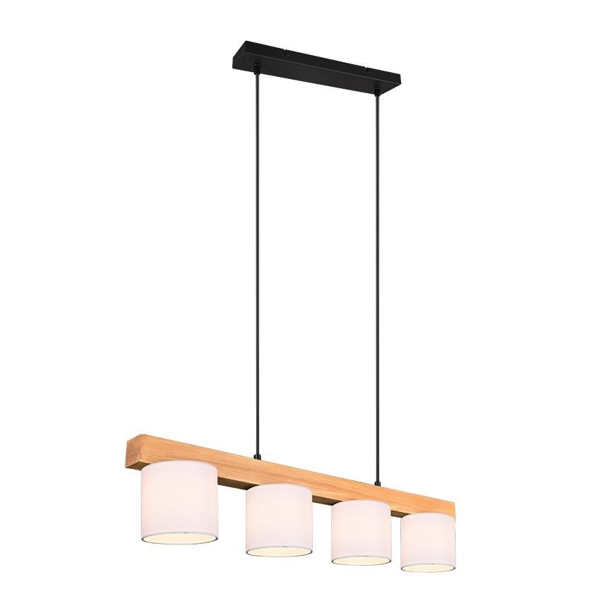 Φωτιστικό Κρεμαστό Τετράφωτο 75εκ. 4*Ε14 Μέταλλο Μαύρο Ματ-Ξύλο-Ύφασμα Λευκό Trio Lighting RL Cameron R30654001