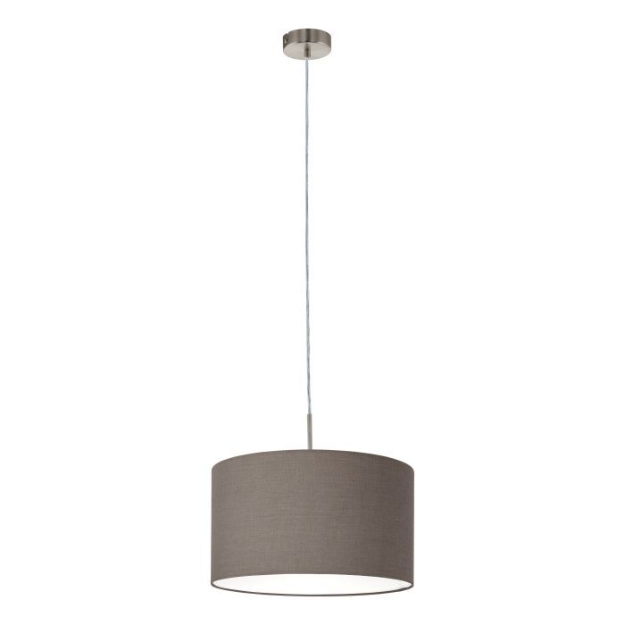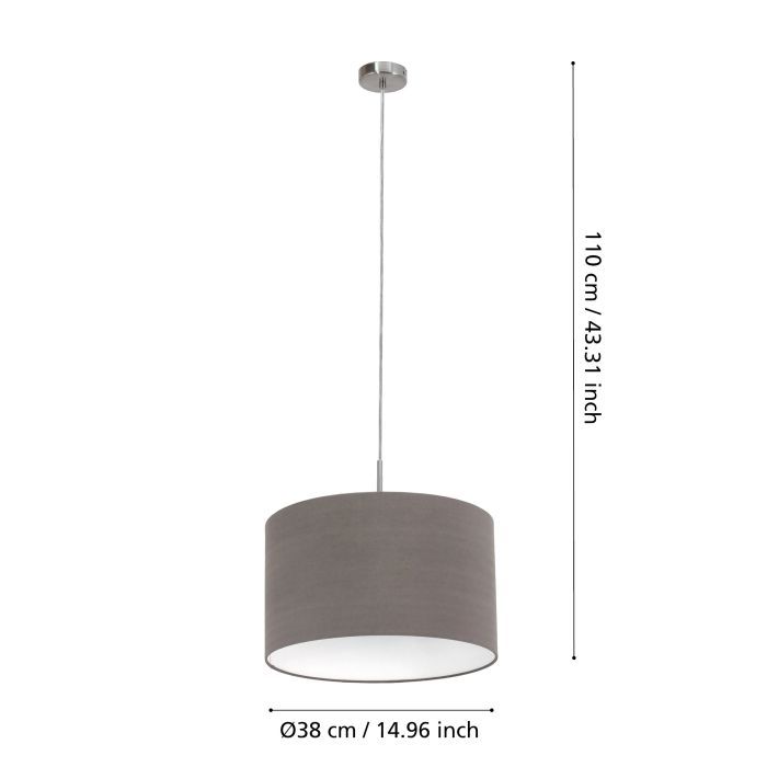 Φωτιστικό Κρεμαστό 1xE27 Ø380xH1100mm Νίκελ Ματ- Ύφασμα Γκρι Elephant Eglο Pasteri 31574