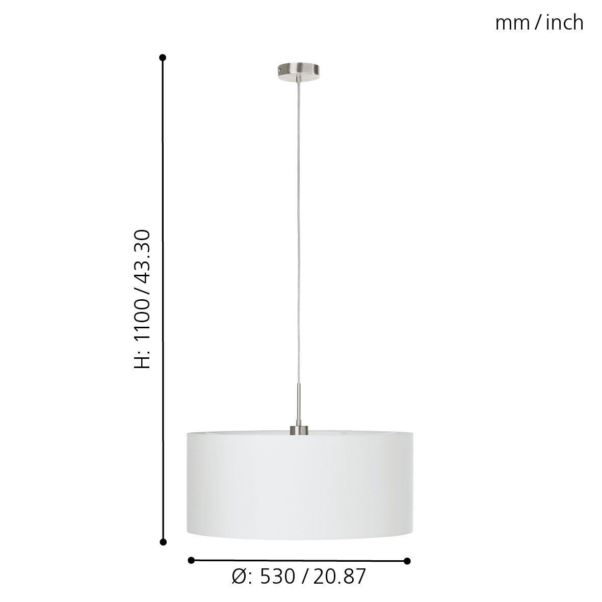 Φωτιστικό Κρεμαστό 1xE27 Ø530xH1100mm Νίκελ Ματ-Λευκό Ύφασμα Eglο Pasteri 31575