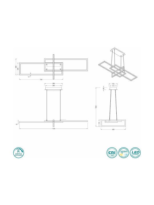 Φωτιστικό Κρεμαστό L110x40xH150cm Smd Led 34w 4200lm 3000K Nickel Mat Trio Salinas 320310307