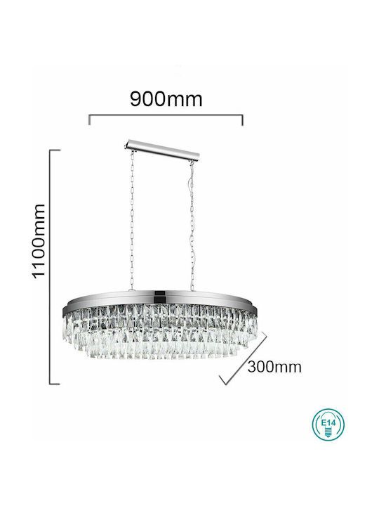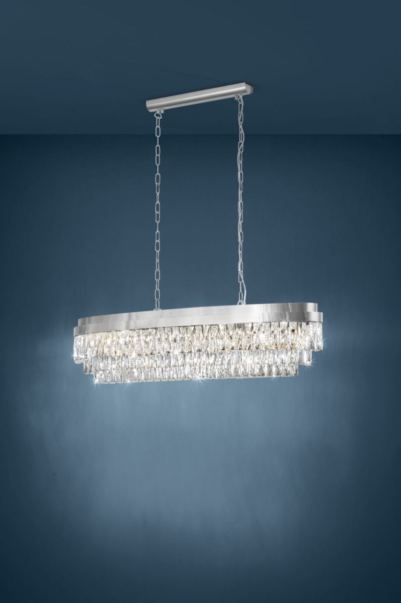 Φωτιστικό Κρεμαστό L900xB300xH1100 mm 10xE14 Χρωμέ -Διάφανα Κρύσταλλα Eglo Valparaiso 1 39494