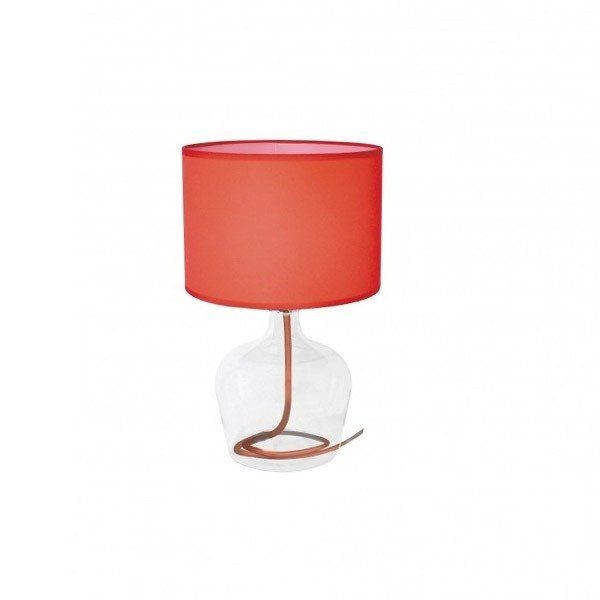 Πορτατίφ με γυάλινη βάση και υφασμάτινο καλώδιο, καπέλο σε κόκκινο.