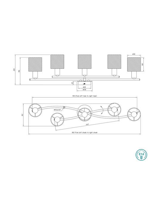 Λαμπτήρας: 5 τμχ. max 60 watt (δεν περιλαμβάνονται)