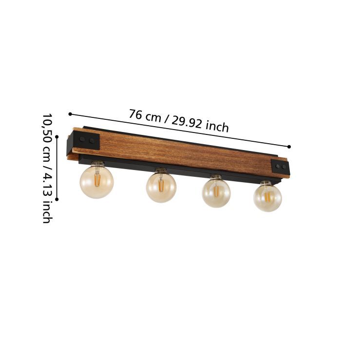 Φωτιστικό Οροφής Ράγα Τετράφωτη L760xH100mm 4xE27 Μέταλλο Μαύρο-Ξύλο Eglo Layham 43466